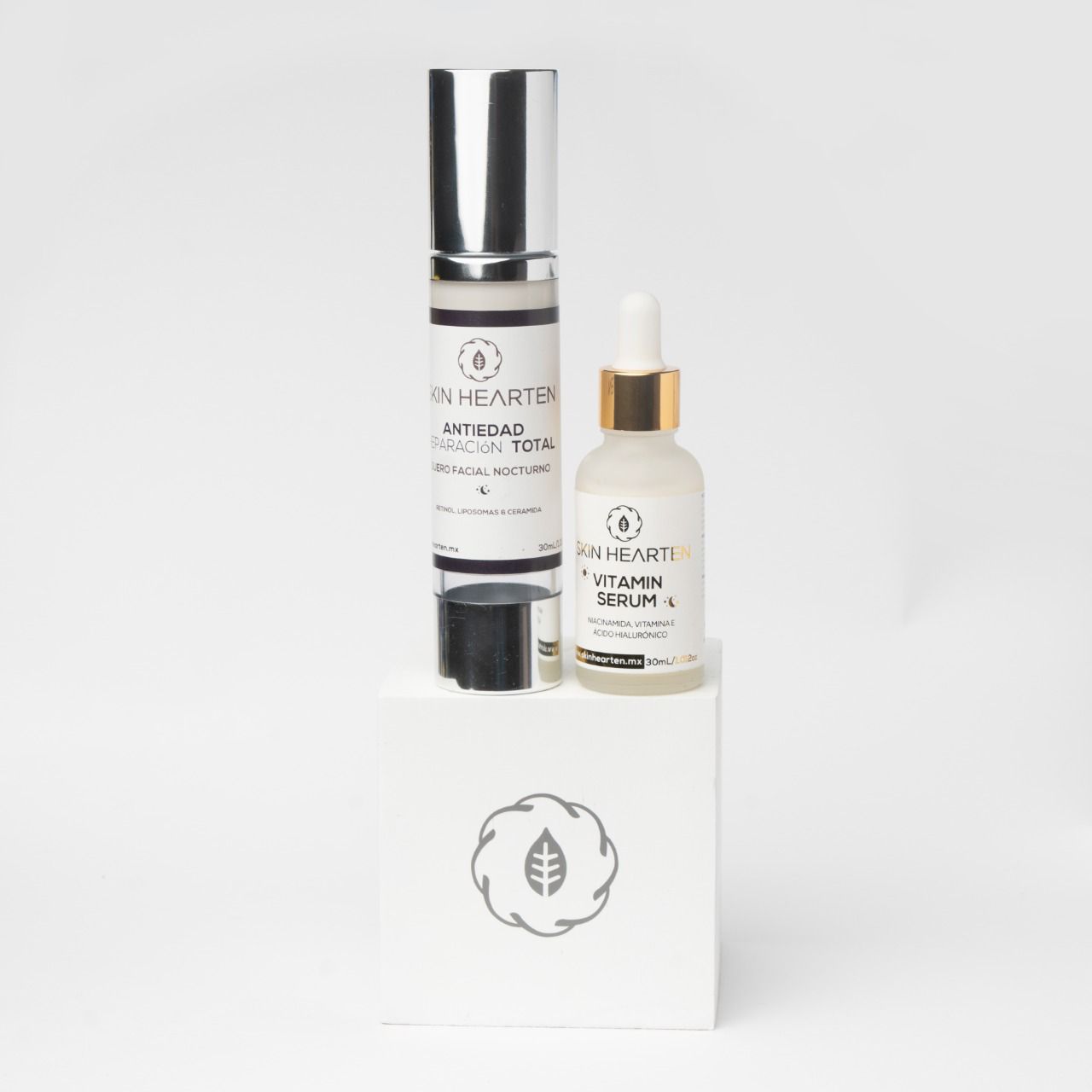 El dúo perfecto que además de desvanecer manchas provocadas por el sol, acné y paño le dará a tu piel un aspecto más joven ya que estimula la producción natural de colágeno, desvanece arrugas y nutre la piel.